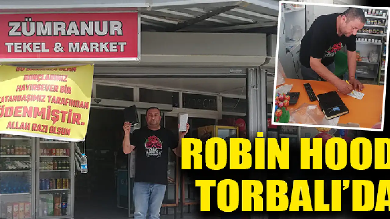 Türkiye’de birçok gecekondu bölgesinde yoksul ailelerin borçlarını kapatan ve çok sayıda yardımda bulundan ve Robin Hood olarak isimlendirilen yardımsever kişilerin son durağı Torbalı oldu. İsminin öğrenilmesini istemeyen gizemli hayırsever, Ayrancılar Fevzi Çakmak Mahallesi’nde bulunan Zümranur Market’e gelerek toplam 27 kişiye ait olan yaklaşık 13 bin 500 liralık veresiye defterindeki borcu ödedi. Borcun tamamını kapatan hayırsever, vatandaşlar tarafından hayır duası alırken aynı zamanda mahallede büyük merak konusu oldu.