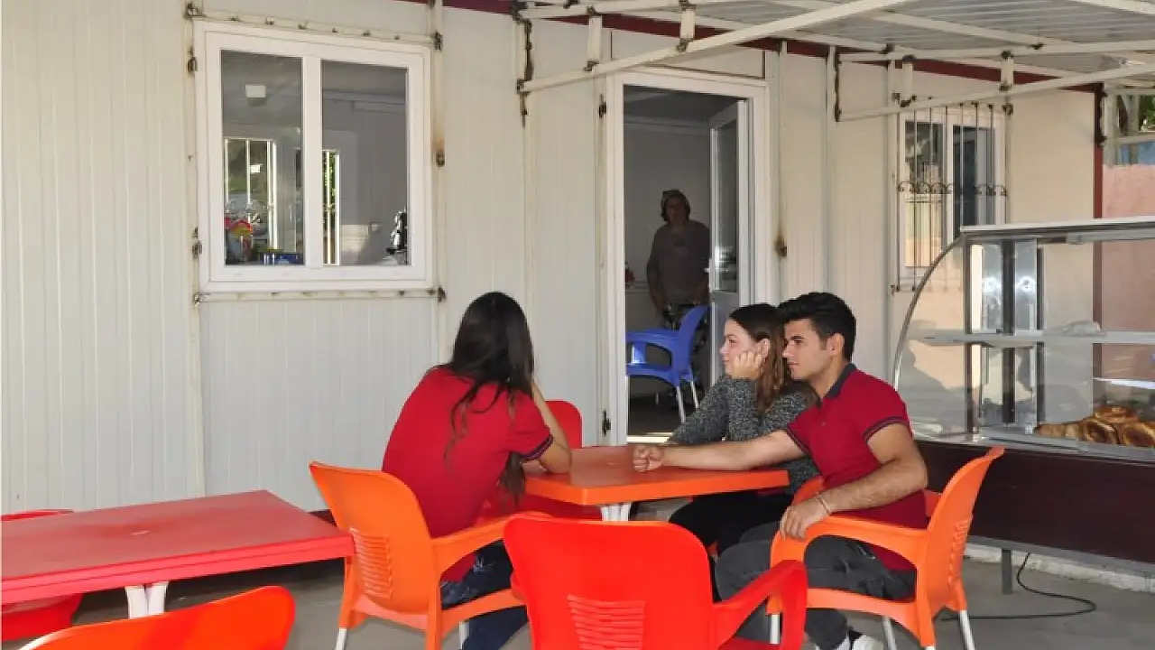 İlçenin başarılı eğitim kurumlar arasında gösterilen özellikle yürüttüğü Avrupa projesi kapsamında ilçemizin tanıtımına katkıda bulunan Mustafa Topalan Mesleki ve Teknik Anadolu Lisesi’nde kantin bulunmuyordu. Sadece ilk teneffüste dışarı çıkma izinleri olan öğrenciler bir de öğle arasında okulun dışındaki işletmelerde ihtiyaçlarını gideriyordu. Akıcı trafiğe rağmen yolun karşısına teneffüs saatlerinde çıkmak zorunda kalan öğrencilerin artık okul bahçelerinde bir kantin var. Konteynırdan yapılan kantin öğrencilerin tüm ihtiyaçlarına cevap veriyor. Tam gün eğitimin verildiği okulda 1996 yılından bu yana kantin bulunmuyordu