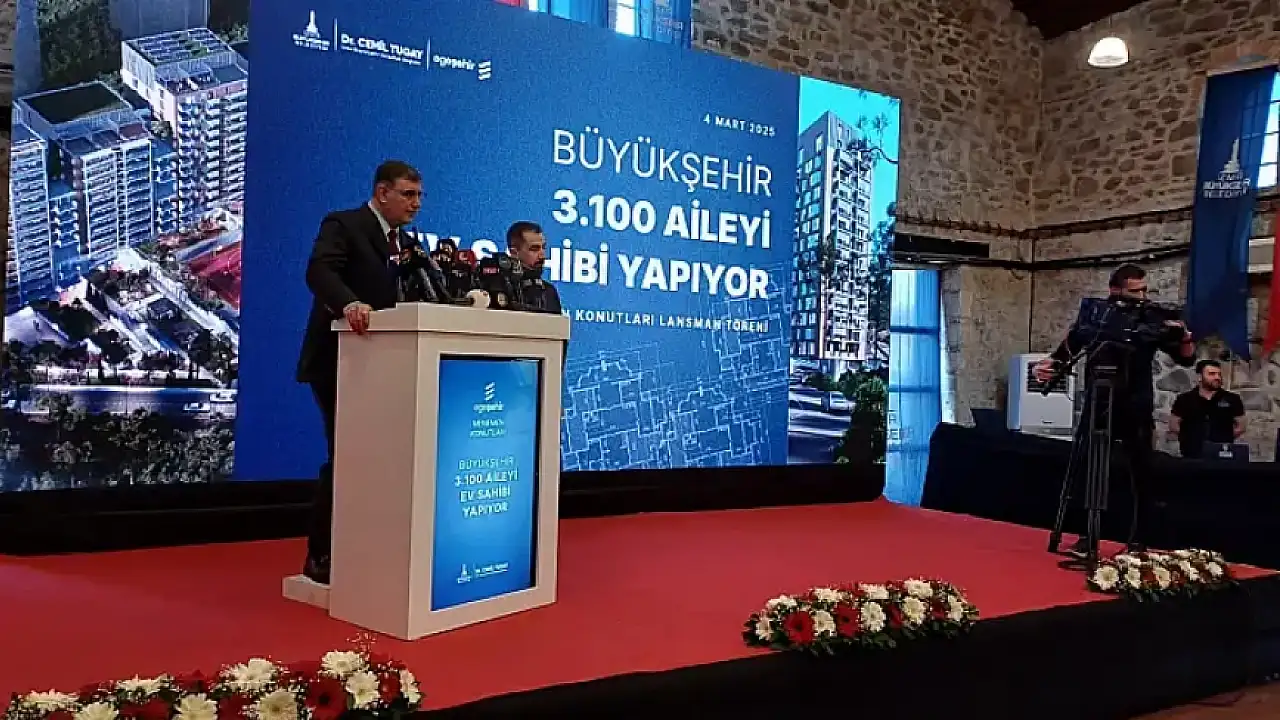 Seçim çalışmaları sırasında İzmir'de 25 bin sosyal konut yapacaklarını vaad eden İzmir Büyükşehir Belediye Başkanı Cemil Tugay, bu vaadin 3100 konutluk ilk bölümü için bugün düğmeye bastı. Koyundere'de yapılacak konut taksitlere asgari ücrete göre belirlendi
