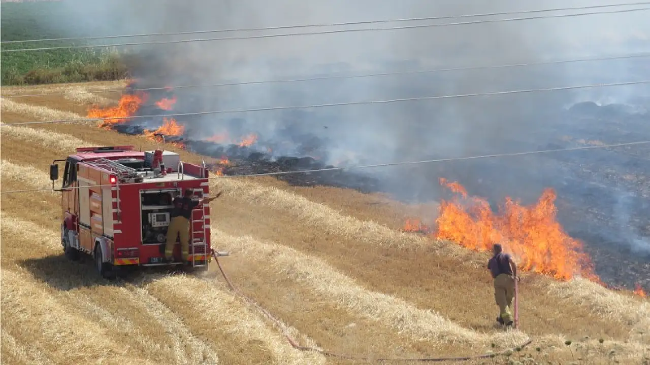 Muratbey Mahallesi’nde biçilmiş buğday tarlasında yangın çıktı. Rüzgar nedeniyle bir anda 80 dönümlük alana yayılan yangında on binlerce liralık saman kül oldu. Evlerin arasında çıkan yangın mahallede paniğe yol açtı.