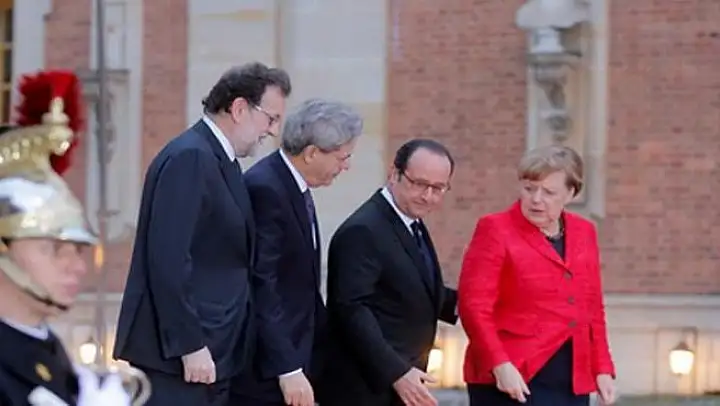 Almanya Başbakanı Merkel, İspanya Başbakanı Rajoy, İtalya Başbakanı Gentiloni ve Fransa Cumhurbaşkanı Hollande, Fransa'da Versay Sarayı'nda düzenlenen mini zirvede Brexit sonrası Avrupa Birliği'nin yol haritasını görüşmek üzere toplandı. Görüşmelerin ardından basın toplantısı düzenledi.