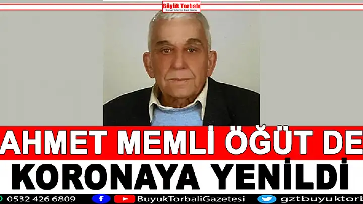Korana virüs Torbalı'da can almaya devam ediyor. Birçok kişinin ölümüne neden olan korona virüs nedeniyle dün bir kişi daha vefat etti. Vatan Partisi Torbalı İlçe Başkanı Süleyman Öğüt'ün babası Ahmet Memli Öğüt de korona virüse yenik düştü. Torbalı Yazıbaşı Mahallesi'nde yaşayan ve çevresi tarafından sevilen Öğüt, yarın defnedilecek. Ahmet Memli Öğüt yarın öğle namazına müteakip kılınacak cenaze namazının ardından Yazıbaşı mezarlığına defnedilecek. Öğüt'ün ölümü yakınlarını ve sevenlerini yasa boğdu.