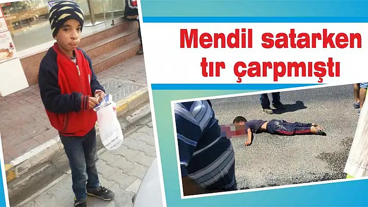 YALNIZCA 5 ay önce mendil satarken bir TIR'ın altında kalan 7 yaşındaki bir Suriyeli çocuk mendil satmaya devam ediyor. İki hafta boyunca ölüm kalım mücadelesi veren, Atatürk Eğitim ve Araştırma Hastanesi'nde hayata tutunan Salim isimli Suriyeli çocuk, hem İzmir Aydın Asfaltı trafik ışıklarında hem de ilçe merkezinde mendil satıyor. Ailesinin baskısıyla sokak sokak gezen, araçlar arasında 1 lira için hayatını tehlikeye atan çocuğun, geçirdiği kazaya rağmen mendil satması ise akıllara durgunluk getiriyor.
