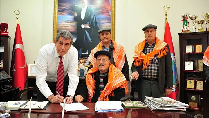 Ahmetli Köyü Yörük Kültürü Yaşatma ve Geliştirme Derneği Üyeleri Torbalılı Yörük olan Balçova Belediye Başkanı Çalkaya'yı makamında ziyaret edip derneğe üye yaptı.