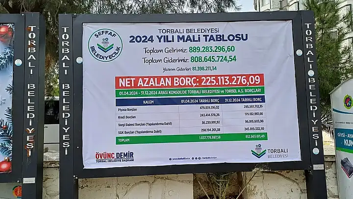 Torbalı'da Belediye Başkanı Övünç Demir'in talimatıyla 2024 yılına ait mali tablo halka açıklandı.