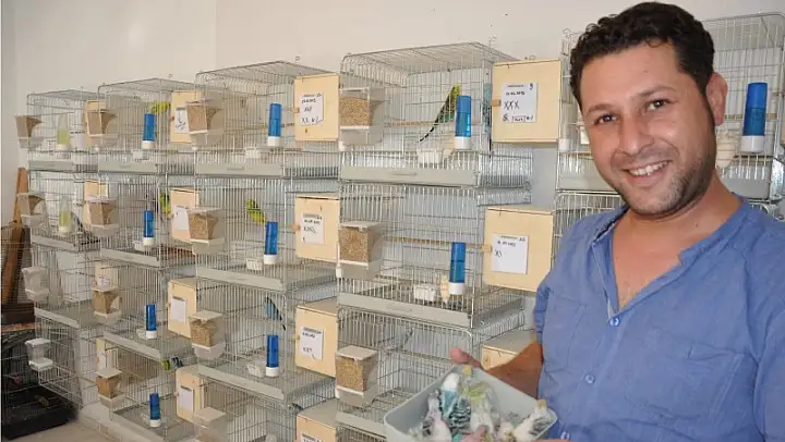 Torbalı Mahallesi'nde muhabbet kuşu üreten Efem Kuşçuluk'un sahibi Mehmet Yorulmaz, bir ilke imza attı. 150 çift kuşun hepsinde kimlik bulunuyor