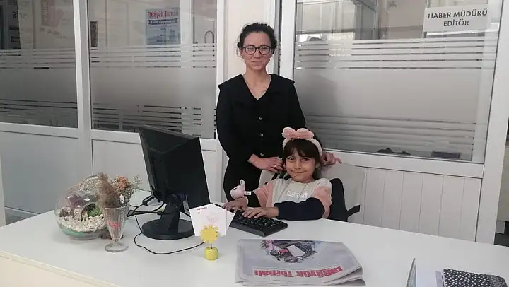 23 Nisan Ulusal Egemenlik ve Çocuk Bayramı kapsamında Büyük Torbalı Gazetesi Haber Müdürü Seda Tener, koltuğunu anasınıfı öğrencisi Aymira Pınar'a devretti