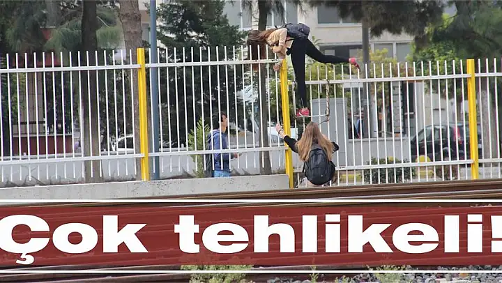İlçeyi ikiye bölen İZBAN hattı için üst geçit çalışmaları bitti ancak canları hiçe sayarak demir parmaklıklardan atlama görüntüleri bitmedi. Üst geçide sadece 50 metre ötede gerçekleşen bu olay 'pes' dedirtti.