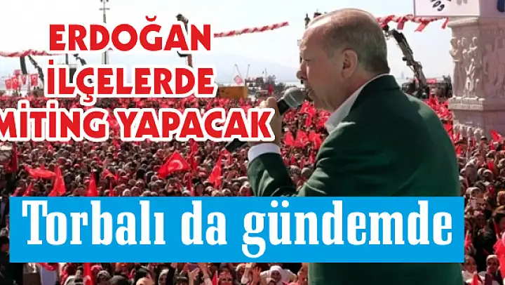 Cumhurbaşkanı ve AK Parti Genel Başkanı Recep Tayyip Erdoğan, ilçelerde mitingler yapmak amacıyla İzmir'e geliyor. Erdoğan'ın miting yapması muhtemel ilçeler arasında Torbalı da var. Program kısa sürede netleşecek.