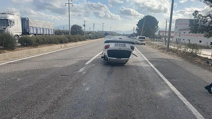 DEVRİLEN OTOMOBİL HURDAYA DÖNDÜ