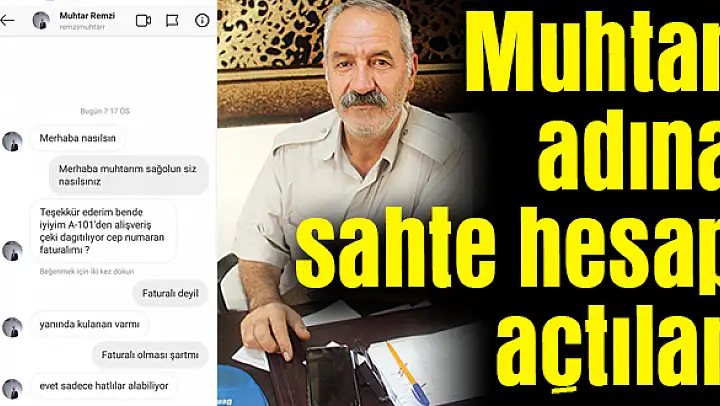 Atatürk Mahalle Muhtarı Remzi Avcı'nın adını ve fotoğrafını kullanarak sahte hesap açan dolandırıcılar, alışveriş çeki dağıttıklarını iddia ederek vatandaşlara mesaj attı. Avcı, gazetemize yaptığı açıklamalarda Instagram hesabı olmadığını ifade ederek uyarılarda bulundu