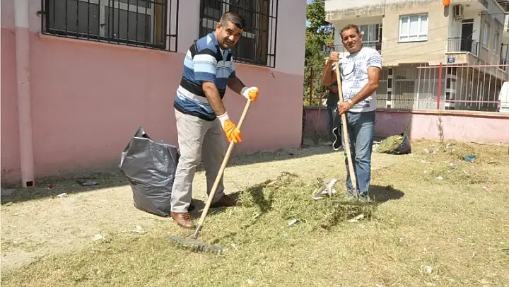 Torbalı Açık Ceza İnfaz Kurumunda cezalarını tamamlayan mahkumlar, okulların temizliğine başladı. Okul bahçeleri onların sayesinde tertemiz oluyor