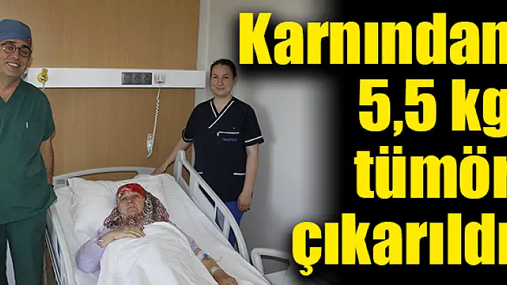 'ÇANAKKALE'DEN gelen ve Tınaztepe Torbalı Hastanesi'ne başvurduğu gün ameliyata aldığımız hastanın karnından yaklaşık 5 buçuk kilogram ağırlığında devasa boyutta kitle çıkartıldı' diye sözlerine devam eden Kasım Arık, 'Profesyonel ameliyathane ekibimizle ve gerekli teknolojik ekipmanlarımızın yardımıyla, sorunsuz bir şekilde temizlenen tümör, ayrıntılı tanı için patolojik değerlendirmeye alındı. Kanserin yaptığı baskı nedeniyle tüm ince bağırsaklar tamamen küçülmüş ve incelmişti. Bu nedenle ikinci bir operasyonla bu sorun da giderildi. Hastanemizin konforlu bakımı ve ilgisiyle, 6 gün sonra şifa ile taburcu edildi. Bundan sonrasında onkoloji biriminde takip ve tedavisi devam edecek olan hastamız H.D.'ye acil şifalar diliyoruz' diye konuştu.