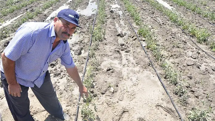 Arslanlar’ın güney kısmındaki üç ayrı tarlayı sular bastı. Yerin altında patlayan su borusu sızdırma yapınca yüzey sularla kaplandı. Alandaki domates ve mısır tarlaları sular altında kalırken 3 dönüm domatesin hastalık kaptığı öğrenildi. Şimdiden yaklaşık 30 tonluk hasadından olan çiftçi 7 gündür ekiplerin müdahale etmediği patlaktan dert yanıyor. Binlerce lira zararlarının olduklarını ifade eden tarla sahipleri elleri bağlı bir şekilde İZSU’nun gelip patlağı onarmasını bekliyor. Defalarca İZSU’yu aradıklarını ama kimsenin gelmediğini ifade eden Arslanlar Mahalle Muhtarı Sedat Sanar adeta ateş püskürdü.