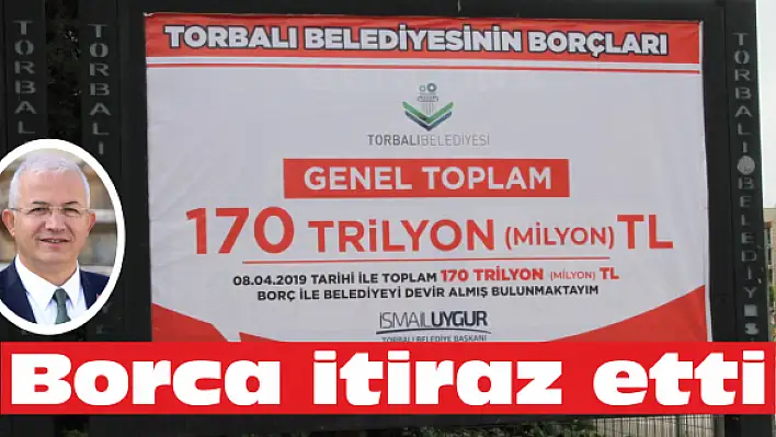 TORBALI'NIN CHP'li Belediye Başkanı İsmail Uygur'un kendisinden önceki döneme ait faizler hariç 170 milyonluk borcu bilboarlarda afişe etmesinin yankıları sürüyor.