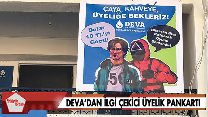 DEVA Partisi Torbalı İlçe Başkanlığı, ilçe binasına astığı mizahi pankartla ilçe sakinlerini üyeliğe davet etti. Squid Game dizisinden esinlenen pankarta ilçe sakinleri yoğun ilgi gösterdi
