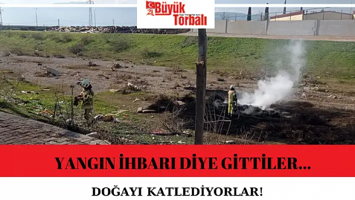 İtfaiye ekipleri Torbalı-Çaybaşı'nda yangın ihbarı ile gittiği boş alanda yakılmış lastiklerle karşılaştı