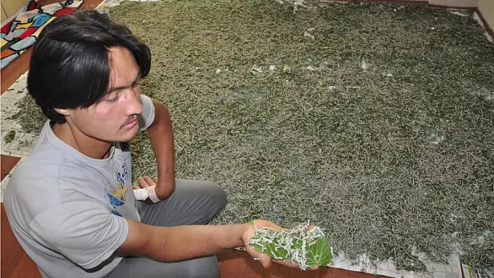 Evinde 400 bin tane ipekböceği yetiştiriyor