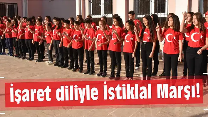 AYRANCILAR Mahallesi’nde eğitim öğretim veren Şehit Onur Ensar Ayanoğlu Ortaokulu öğrencileri 29 Ekim Cumhuriyet Bayramı etkinliklerinde farkındalık yaratmak adına işaret dili ile İstiklal Marşı okudu. Okulun Müzik Öğretmeni Hande Çolak, öğrencilerinin engellilere olan bakış açısını değiştirmek ve farkındalık yaratmak adına bir projeye imza attı.İşaret dilini bilmediği halde İnternetten araştırıp bilgi edinen Müzik Öğretmeni Hande Çolak, öğrendiklerini öğrencilerine aktardı. 1 aylık çalışmanın ardından öğrenciler İstiklal Marşı, 10. Yıl Marşı ve Bir Başkadır Benim Memleketim isimli parçayı işaret dili ile öğrendi. Öğrenciler 29 Ekim Cumhuriyet Bayramı dolayısıyla okulda düzenlenen törende sahneye çıktı. İşaret dili ile marşlar ve şarkılar söyleyen öğrenciler, izleyicilerden tam not aldılar.