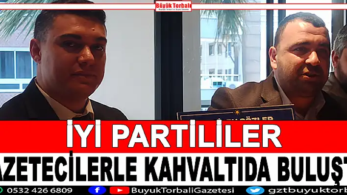 İyi Parti Torbalı İlçe Başkanlığı, 10 Ocak Çalışan Gazeteciler Günü vesilesiyle gazetecilerle kahvaltıda buluştu. Partinin il yöneticilerinin de katıldığı buluşmada kahvaltıdan sonra İyi Parti İzmir İl Başkan Yardımcısı Fatih Erkut ve Torbalı İlçe Başkanı Ahmet Künarlıoğlu gazetecilerle mini bir basın toplantısı da gerçekleştirdi