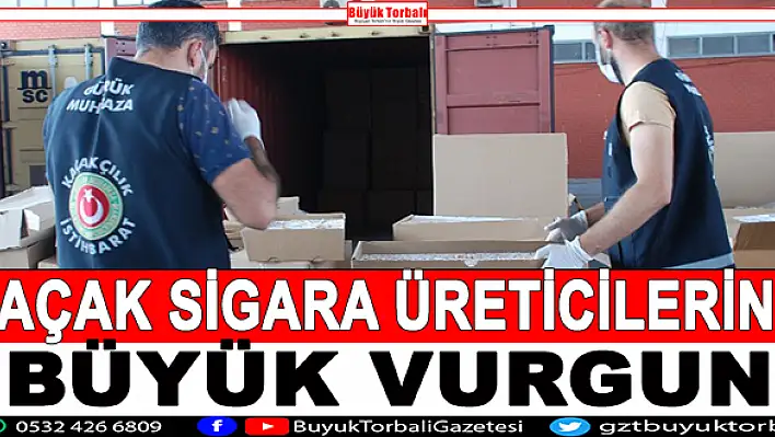 İzmir Emniyet Müdürlüğü KOM Şube Müdürlüğü ekipleri; Torbalı, Kemalpaşa ve Buca’da kaçak sigara üreticilerine operasyon düzenledi. Operasyon kapsamında 18 kişinin gözaltına alındığı öğrenildi. Kemalpaşa’da bulunan kaçak sigara imalathanesine, Buca’da bulunan depoya ve Torbalı ‘da bulunan bir kamyona düzenlenen eş zamanlı operasyon kapsamında çok sayıda kaçak sigara üretiminde kullanılan materyale el konuldu. Bir süredir üç ilçenin Emniyet Müdürlüğü ile ortaklaşa yürütülen teknik ve fiziki takiple yapılan operasyonlardaki aramalarda; 10 milyon 302 bin doldurulmuş sigara, 460 bin boş makaron, 5,5 ton kıyılmış tütün, 8 milyon sigara filtresi, 2,5 ton sigara filtre kâğıdı, 850 kilogram sigara kâğıdı, 432 kilogram nargile tütünü ele geçirildi, 1 makine bandı ve üretim ünitesinin olduğu kaçak sigara imalathanesine el koyuldu.