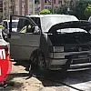 Öğlen saatlerinde su deposunun orada Mustafa Sapmaz kontrolündeki 35 FD 595 plakalı araç seyir halindeyken benzin kaçağından dolayı birdenbire motor kısmı alev aldı.