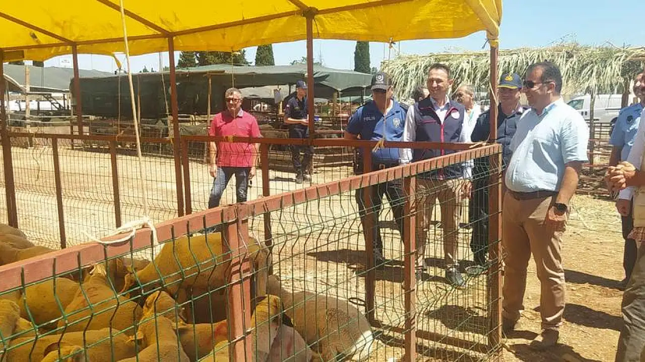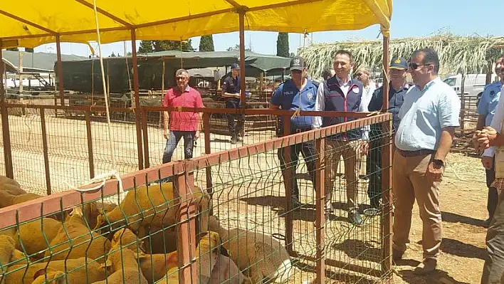 Yazıbaşı’nda kurulan kurbanlık pazarında satışlar başlarken satıcı ve alıcının mağdur olmaması için Torbalı Kaymakamı Ercan Öter, pazarı denetledi