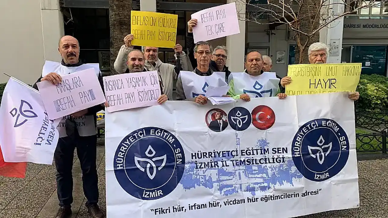 İzmir'de de SGK İl Müdürlüğü önünde toplanan Hürriyetçi Sendikalar Konfederasyonu'na bağlı sendika üyeleri adına 'TÜİK enflasyonunu toptan reddediyoruz. Refah payı istiyoruz' başlıklı basın açıklamasını okuyan Hürriyetçi Eğitim Sen İzmir İl Başkanı Adnan Sarısayın, ekonomik krizin derinleştiğini ve sebebin de iktidarın yanlış uygulamalarından kaynaklandığını söyledi.