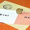 a- Seçmen, sandık kurulunca kendisine verilen, beyaz üzerine “Evet”, kahverengi üzerine “Hayır” ibareleri bulunan iki ayrı renkten oluşan birleşik oy pusulası ve “Evet” mührünü alarak oyunu kullanmak üzere kapalı oy verme yerine girer