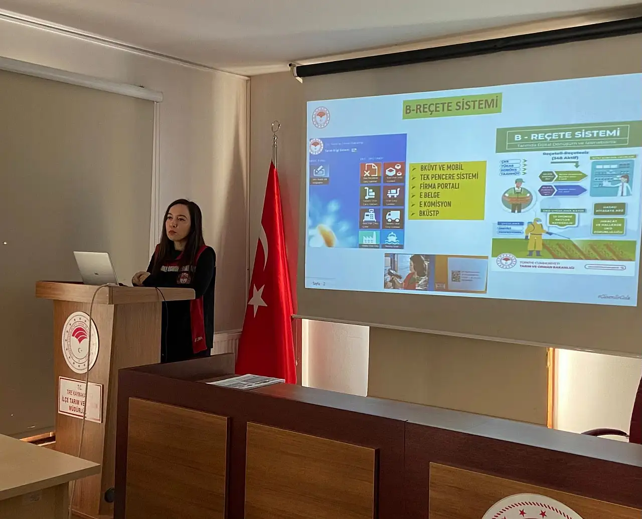 Tire İlçe Tarım ve Orman Müdürlüğü, üreticilere yönelik B-Reçete bilgilendirme ve Bitki Koruma Ürünleri Uygulayıcı Belgesi eğitimi düzenledi. Eğitimde doğru ve bilinçli ürün kullanımı ele alındı.