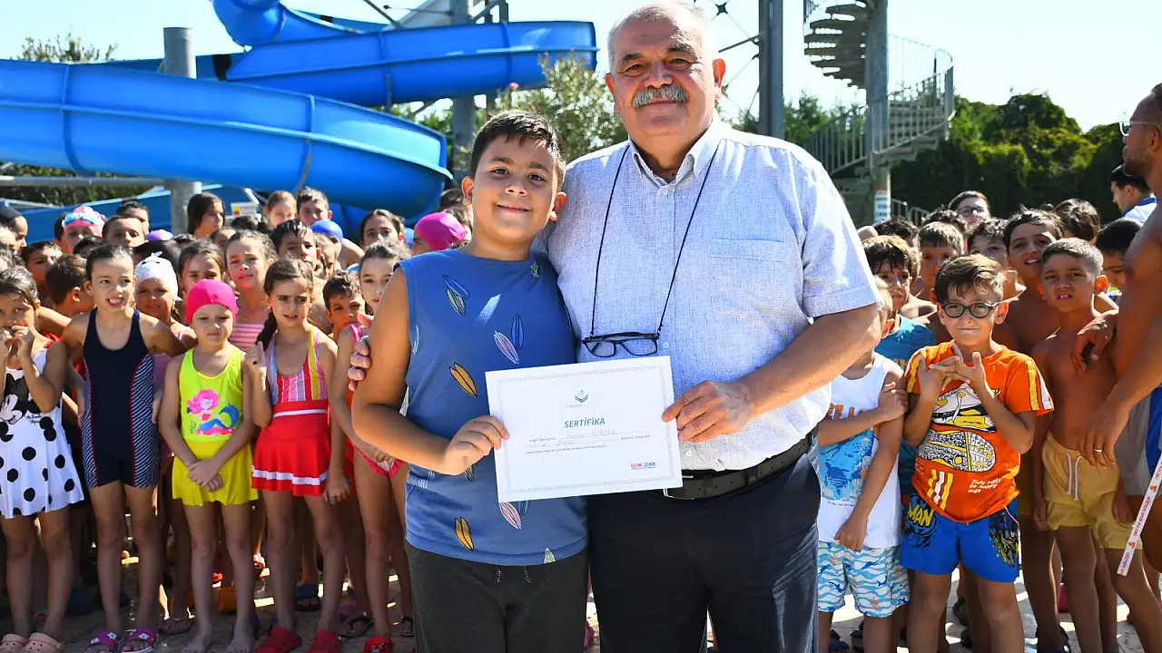 2024 yaz dönemi yüzme kursunun ikinci etabının da başarılı bir şekilde tamamlandığını, belirten Torbalı Belediye Başkan Vekili Ertan Çelik, “Torbalı Belediyesi olarak düzenlediğimiz yüzme kursunu başarıyla tamamlayan sevgili öğrencilerimiz sertifikalarına kavuştu.  Yaz mevsimi boyunca toplamda 700 öğrencimiz yüzme kursumuzdan yararlandı. Kursumuzu başarıyla tamamlayan öğrencilerimizi tebrik ederim. Alanında uzman antrenörümüz ile çocuklarımıza hem yüzmeyi hem de sağlıklı bireyler olarak yetişmesine katkıda bulunuyoruz. Torbalı Belediyesi olarak, çocuklarımızın sağlıklı bireyler olarak yetişmesine katkıda bulunmak ve onların sporla iç içe bir yaşam sürmelerini sağlamak amacıyla kurslarımıza devam edeceğiz” ifadelerini kullandı.