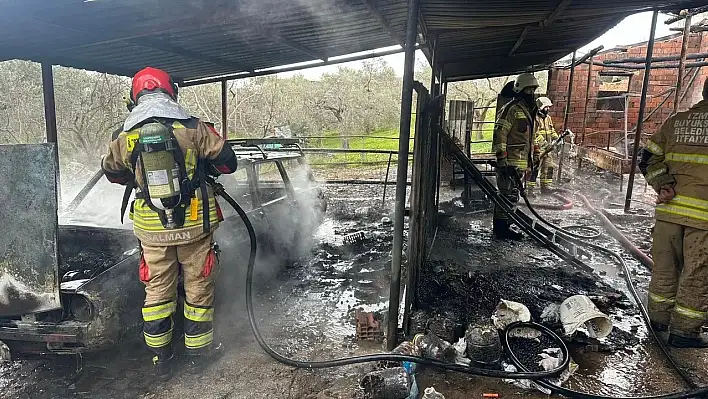 Alevler kısa sürede tüm damı sararken, içinde bulunan 5 keçi öldü. Yangın sırasında Aydemir’e ait bir otomobil, ilaçlama makinesi, 500 kilogram sofralık zeytin, yem ve samanlar da küle döndü.
