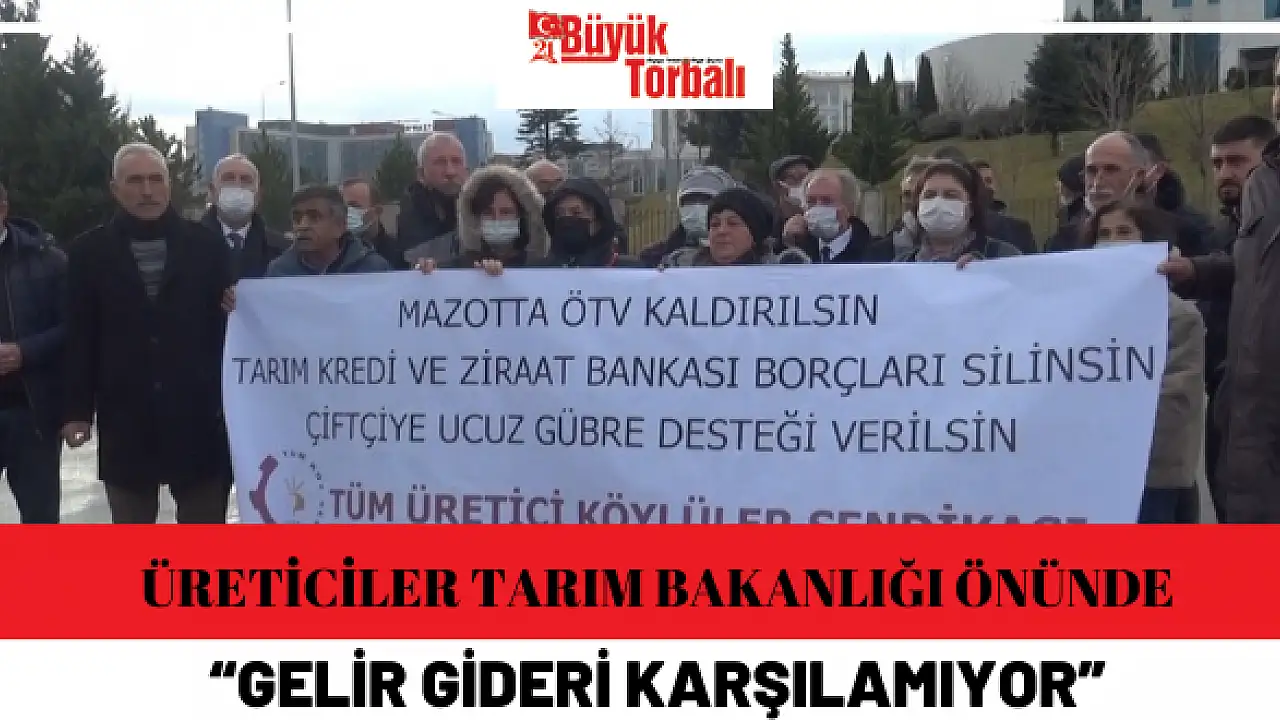 Tüm Köy Sen Genel Başkanı Sadık Turan ise geçen yıl da Tarım Bakanlığı’na gelip eylem yaptıklarını hatırlatarak, “Üreticilere verilen sözler tutulmadığı gibi şartlar daha da ağırlaştı” dedi. Bu yıl 50 ilde kuraklık yaşandığını belirten Turan, “Artan döviz kurları sonucu mazot ve gübredeki fiyatlar yüzde 500’lere kadar arttı. Bu ülke tarım ülkesiydi. Biz tarımda kendi kendine yetebilen 7 ülkeden biriydik. Ama şimdi bırakın yetmeyi, her şeyi ithal eder duruma geldik. Bunun çözümü var. Hükümet, ulusal bir tarım politikası izlemek zorundadır. 2006 yılında hükümet bir yasa çıkardı. Buna göre gayrisafi milli hasılanın en az yüzde 1’i oranını tüm üreticilere vermek zorundasınız. Ama bugün bize bunun yarısını reva görüyorlar” dedi.
