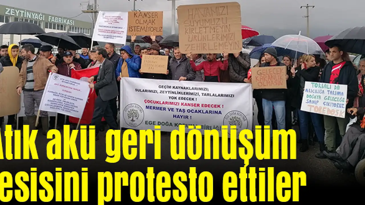Torbalı Organize Sanayi Bölgesi'ne kurulması ön görülen atık akü geri dönüşüm tesisi nedeniyle bölge sakinleri cumartesi günü eylem yaptı. Sanayi bölgesinin girişinde basın açıklaması yapan grup, sloganlar eşliğinde sağanak yağmur altında yürüyüş yaptı
